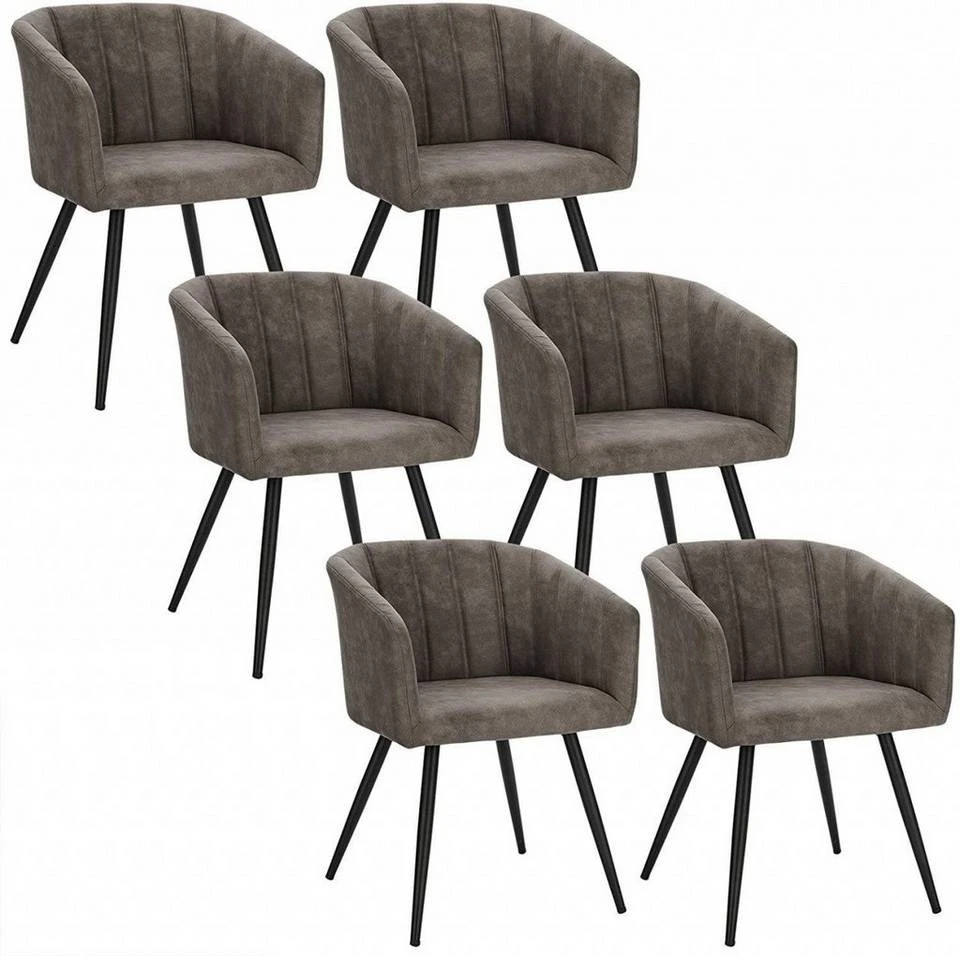 EUGAD 4-Fußstuhl, 6er-Set Esszimmerstuhl Polsterstuhl aus Stoffbezug Grau Dunkelbraun
