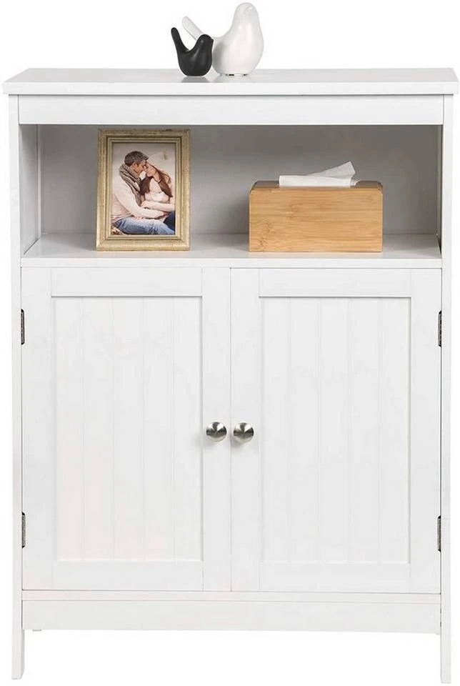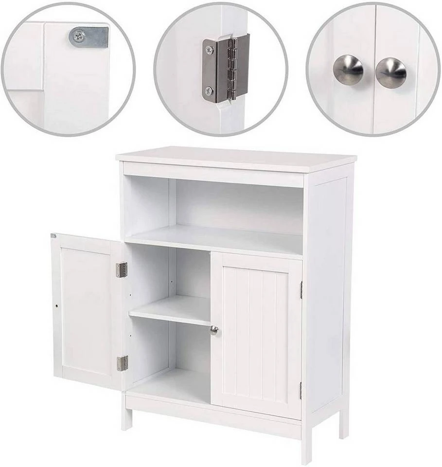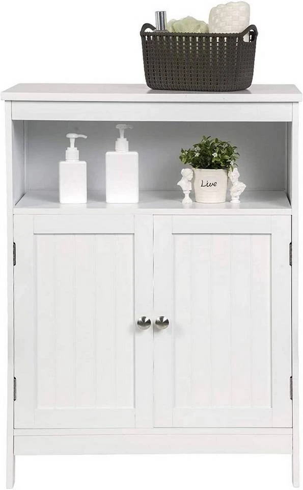 EUGAD Badkommode, Badschrank Beistellschrank, mit Doppeltür, 3 Fächern, MDF, Weiß