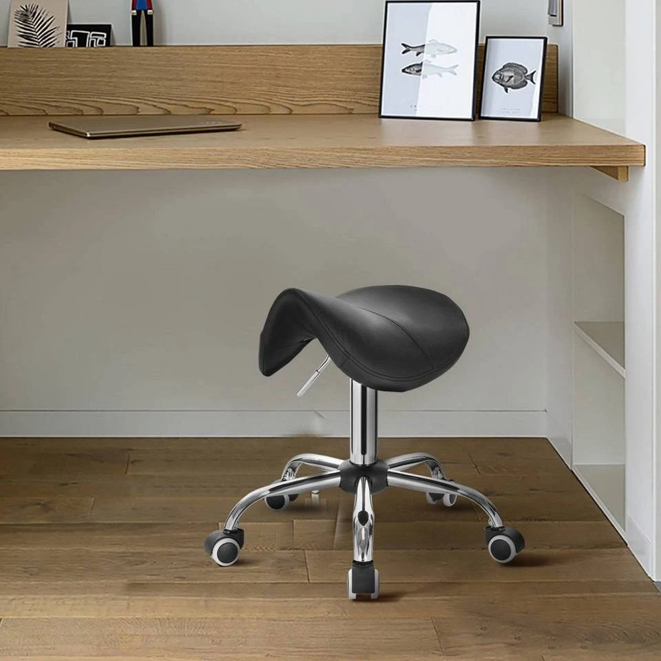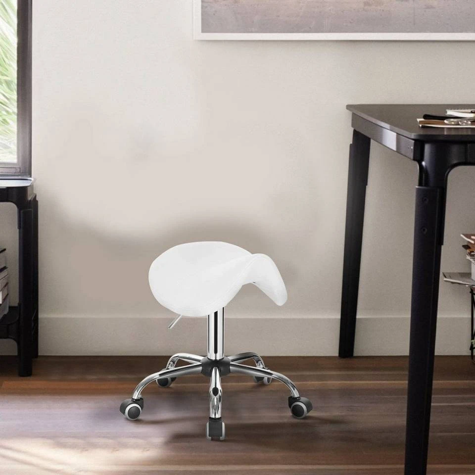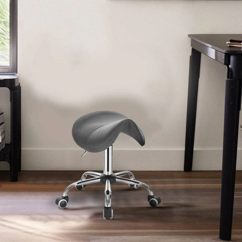 EUGAD Drehstuhl (1 Stück), Sattelhocker gepolstert höhenverstellbar aus Kunstleder Grau Schwarz, Weiß