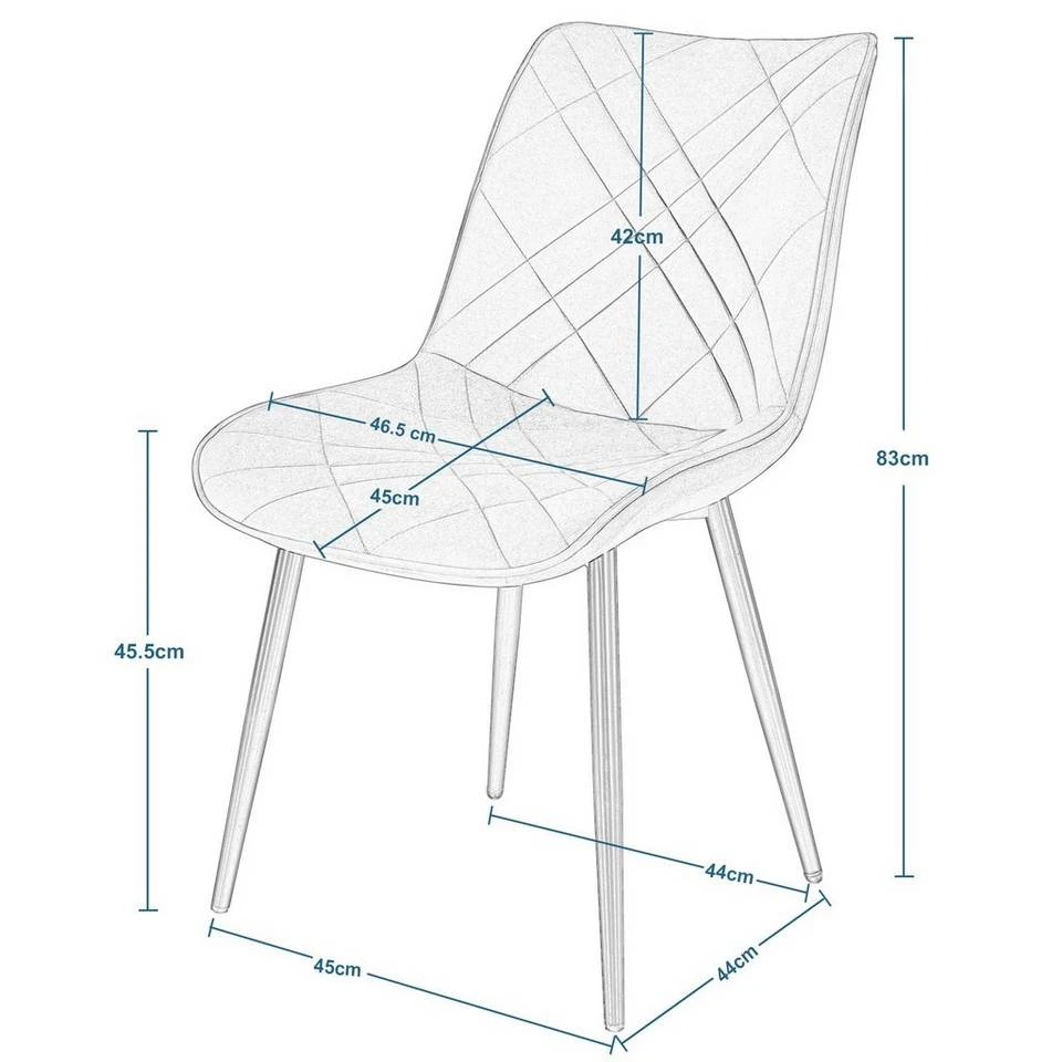 - Das Gestell des Esszimmerstuhls ist aus robustem und langlebigem Metall gefertigt. Die 4 robusten lackierten Metallbeine sind rostfrei und langlebig.