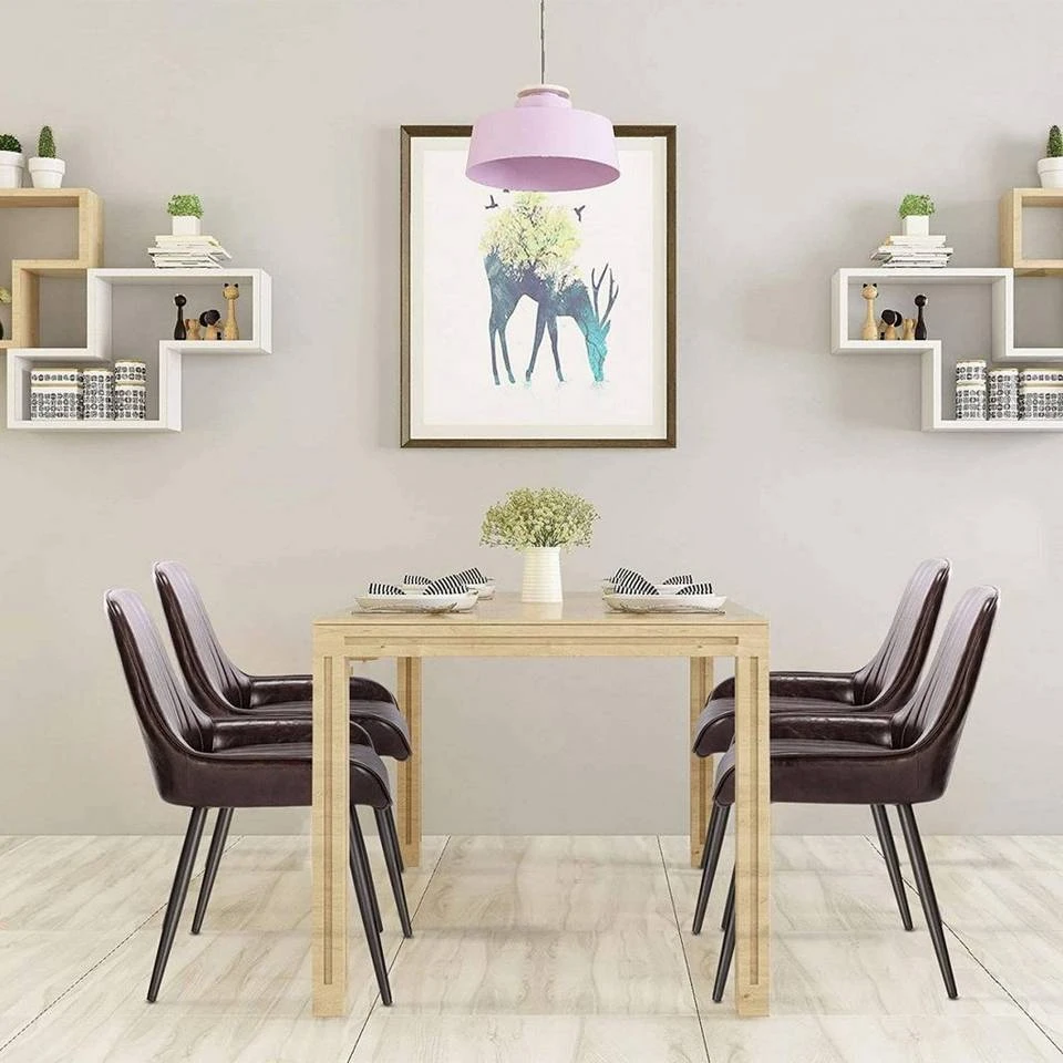EUGAD Esszimmerstuhl, 4 Stücke Retro Küchenstuhl Sitzfläche aus PU mit Metallbeine Schwarz Braun, Dunkelbraun, Dunkelgrün, Grau
