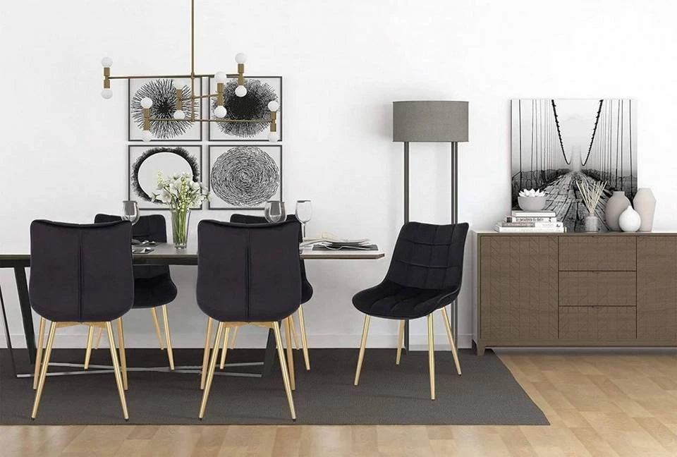 - 6er-Set Küchenstühle aus Samt goldene Beine
