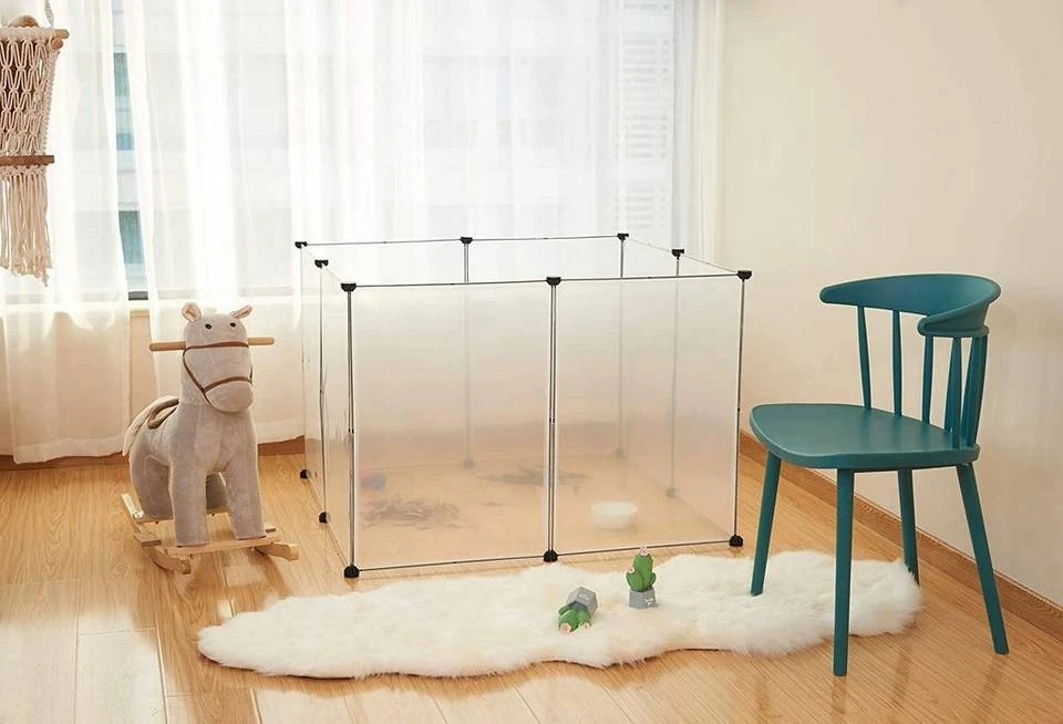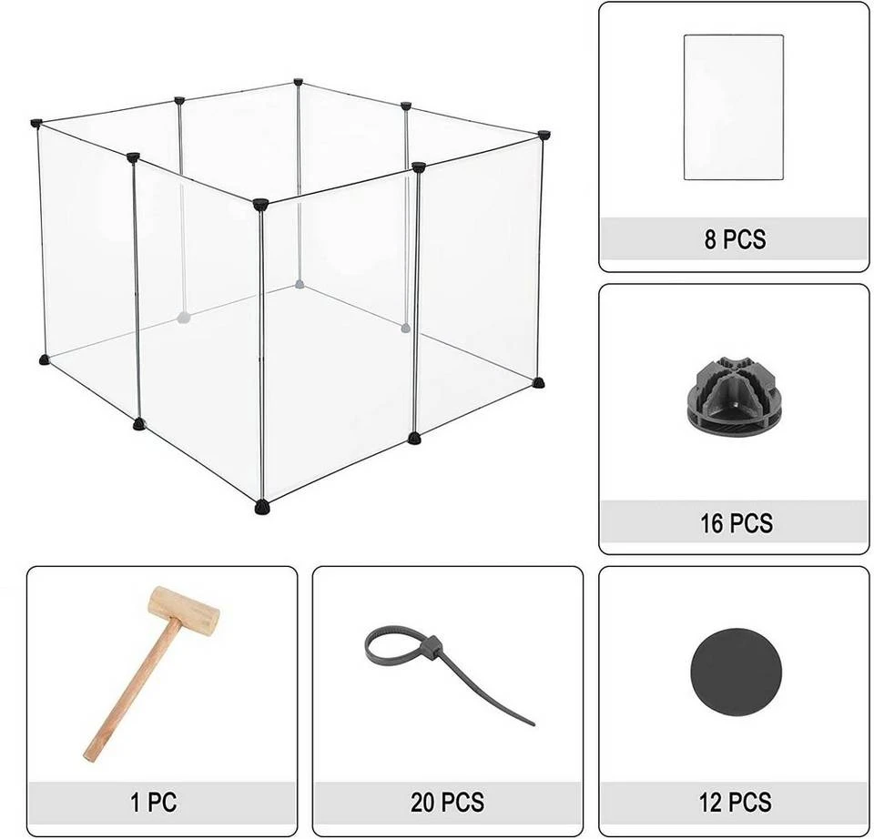 EUGAD Freigehege, Freigehege für Kaninchen Hasen Meerschweinchen Welpenauslauf DIY 8 Platten Transparent 102 x 102 x 70 cm