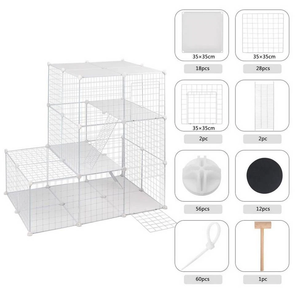 EUGAD Freigehege, Freigehege Kaninchen mit Stauraum Hasen Meerschweinchen Welpenauslauf Laufgitter mit Tür&Treppe DIY Schwarz 48 Platten (35x35cm/Platte) 110x 75 x 110 cm