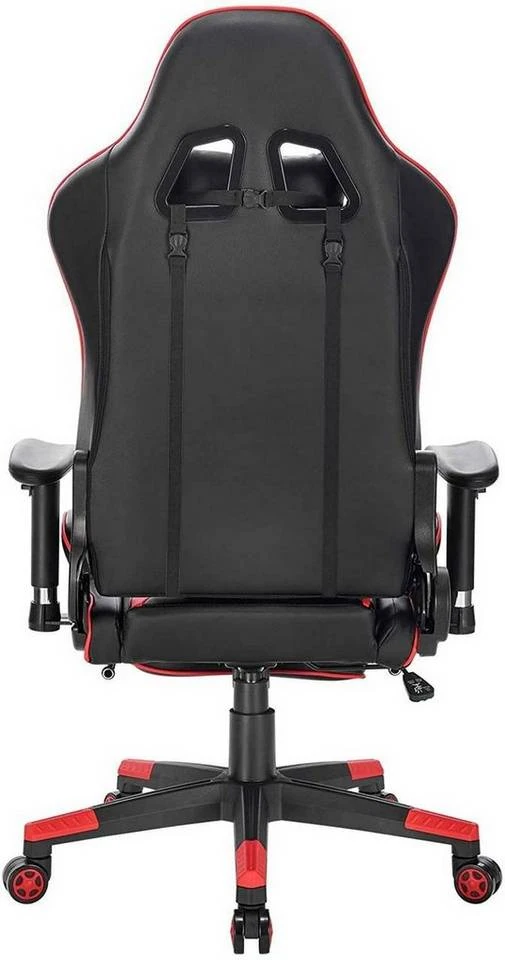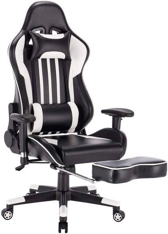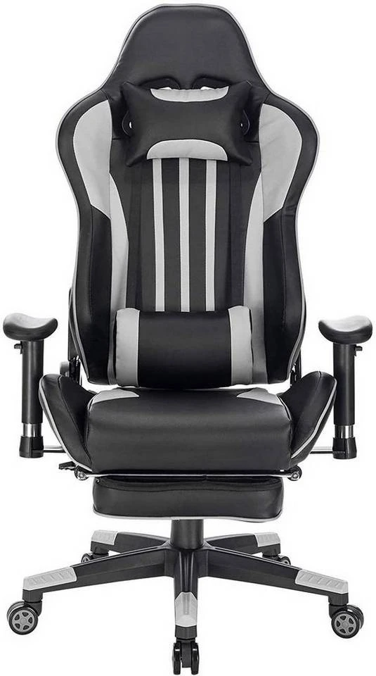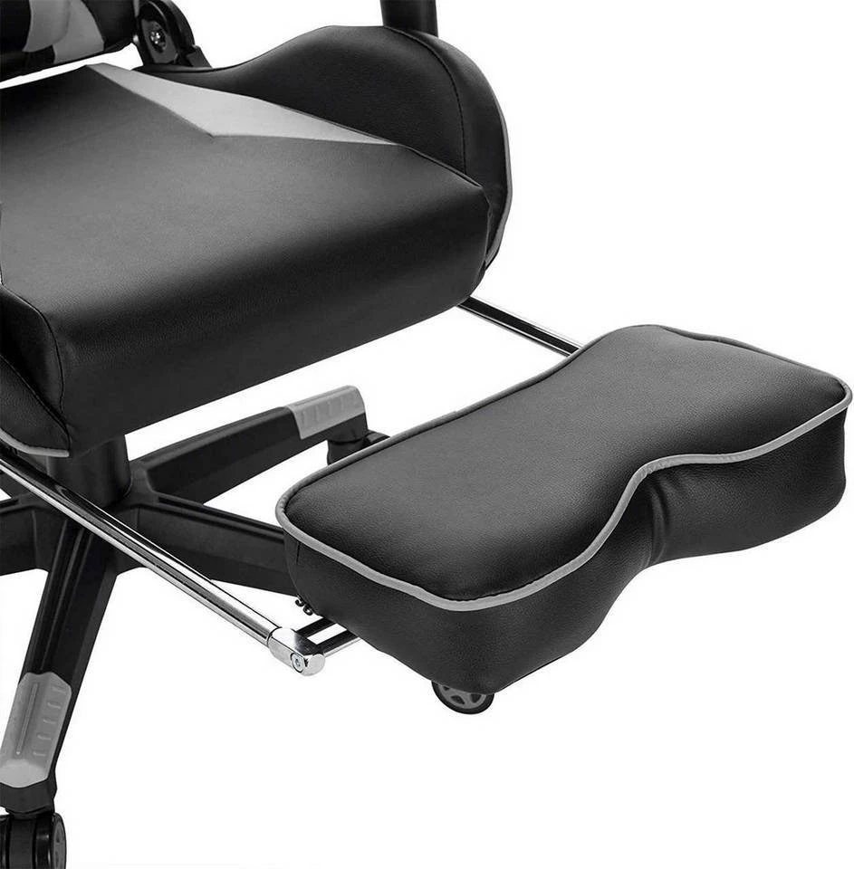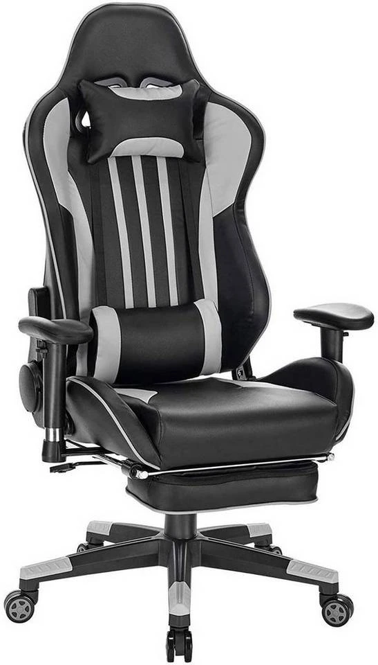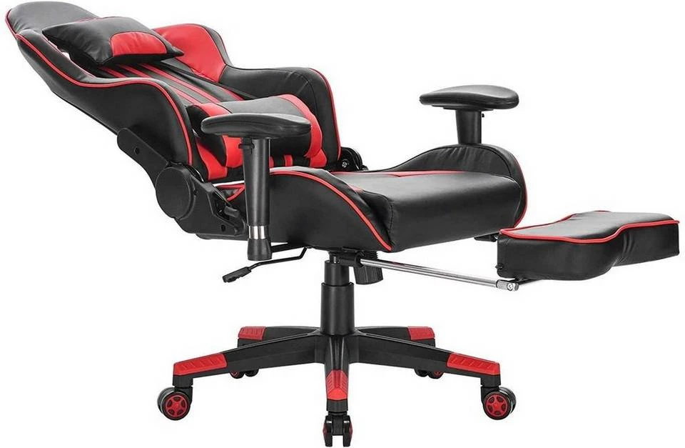 EUGAD Gaming-Stuhl (1 Stück), Racing Stuhl mit Fußstütze Racing Stuhl Drehstuhl Bürostuhl Schreibtischstuhl PC Stuhl mit Wippfunktion Höhenverstellbar Kunstleder Rot Grau, Weiß