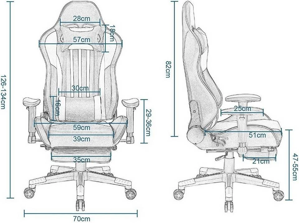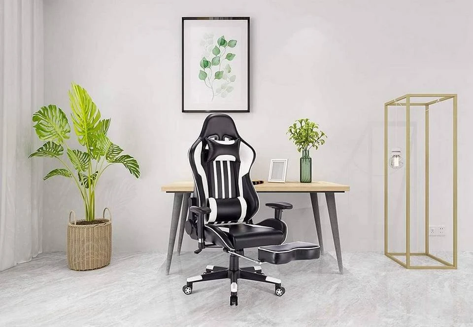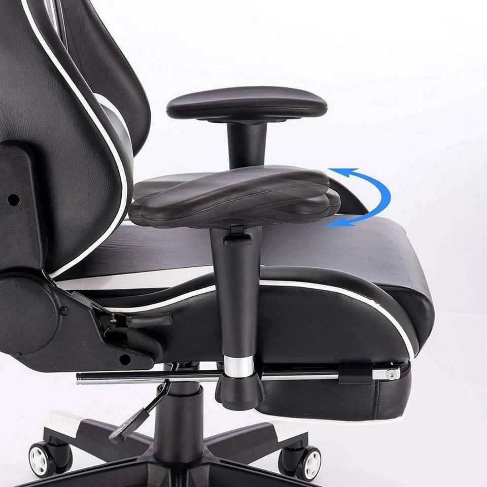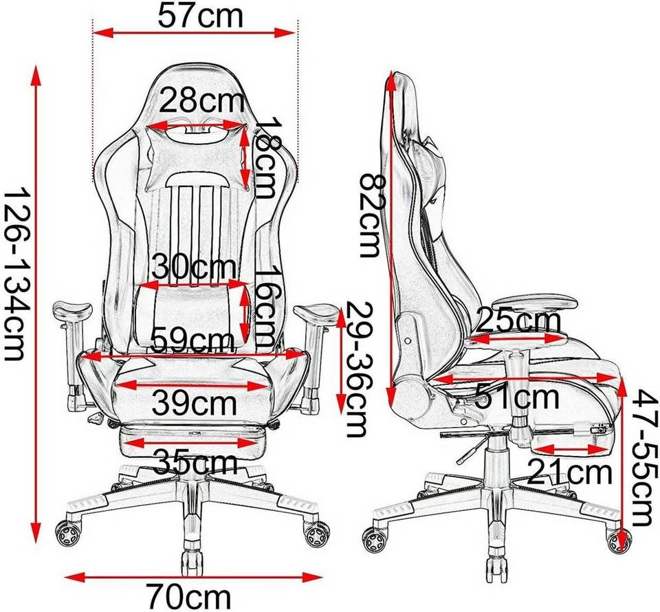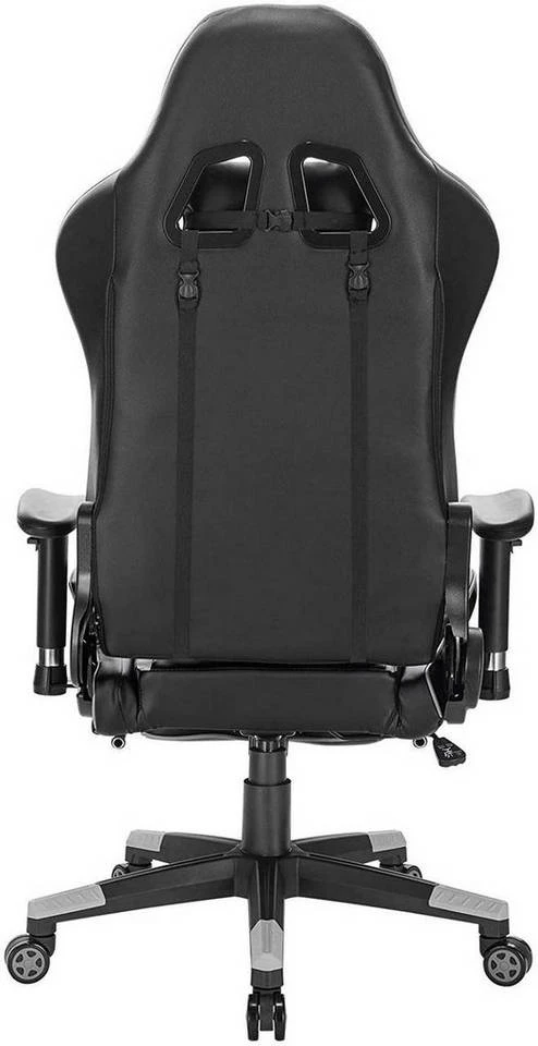 EUGAD Gaming-Stuhl (1 Stück), Racing Stuhl mit Fußstütze Racing Stuhl Drehstuhl Bürostuhl Schreibtischstuhl PC Stuhl mit Wippfunktion Höhenverstellbar Kunstleder Rot Grau, Weiß