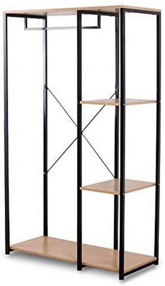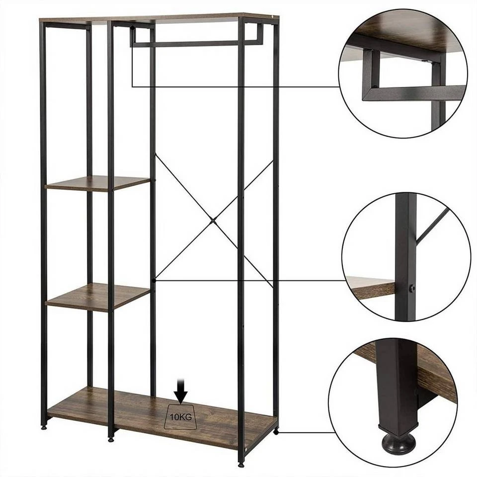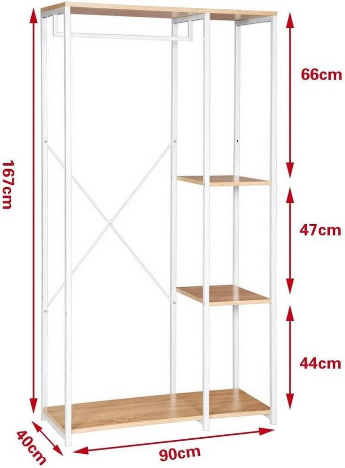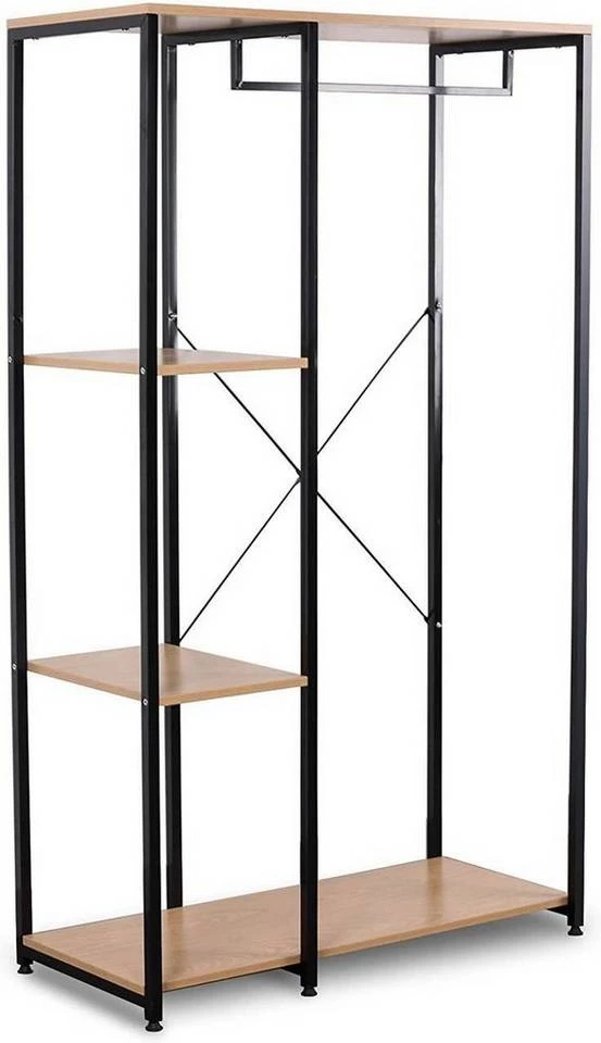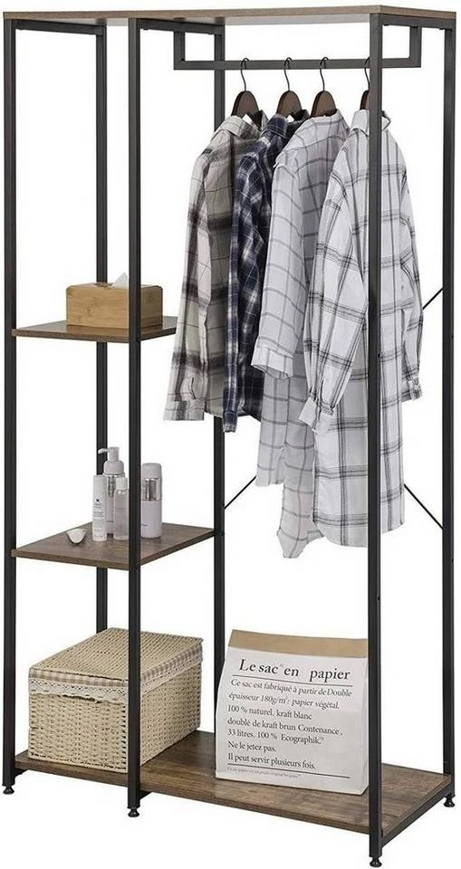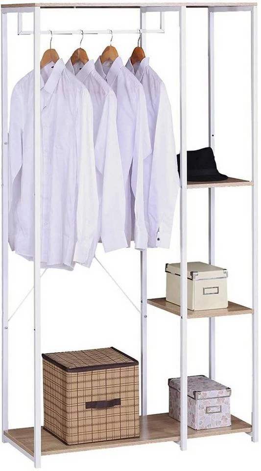 EUGAD Kleiderständer, Garderobenständer Hängeregal mit Schuhregal Holz Metall Schwarz-Hell Eiche Schwarz-Vintage, Weiß-Eiche