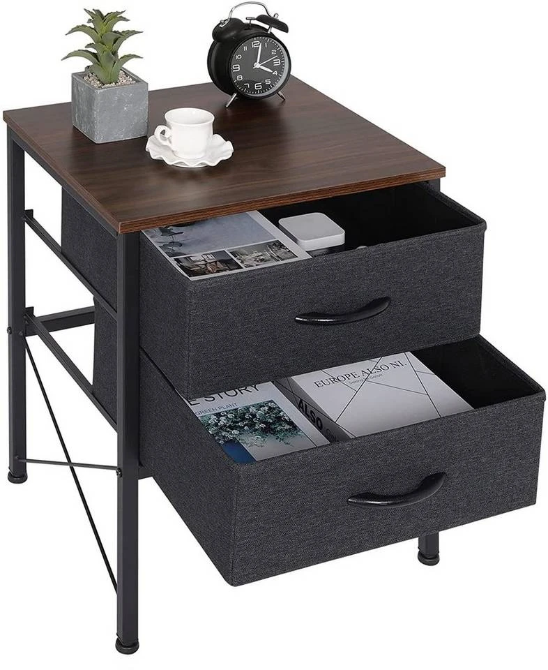 EUGAD Nachttisch (1-St), mit 2 Schubladen Couchtisch Beistelltisch für Wohnzimmer Nachtkommode Nachtschrank für Schlafzimmer industrieller Stil