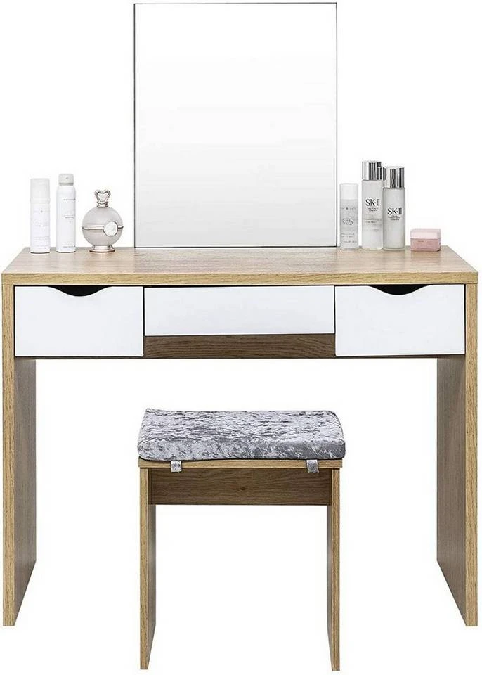 - Lieferumfang: 1 x Schminktisch, 1 x Hocker, 1 x Anleitung