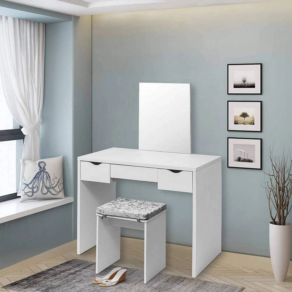 - Schminktisch 3 Schubladen mit Hocker und Spiegel
