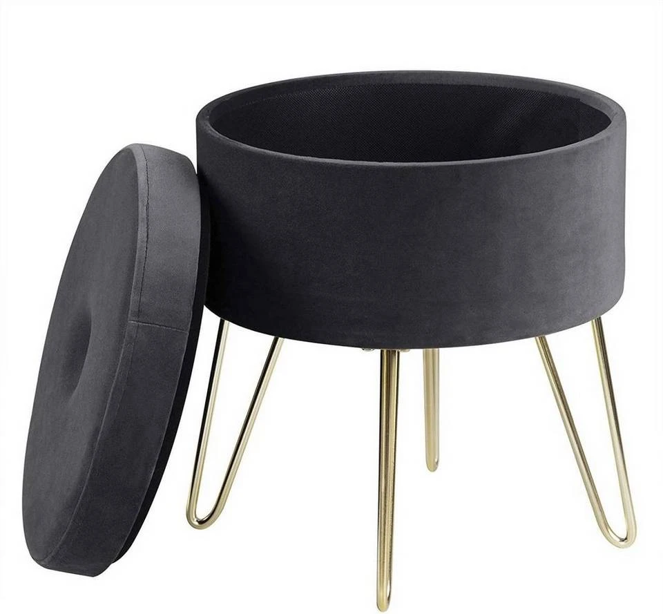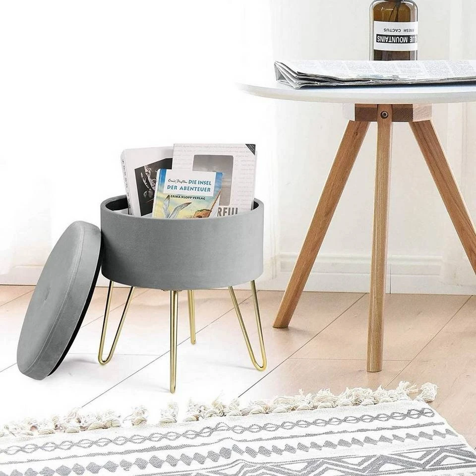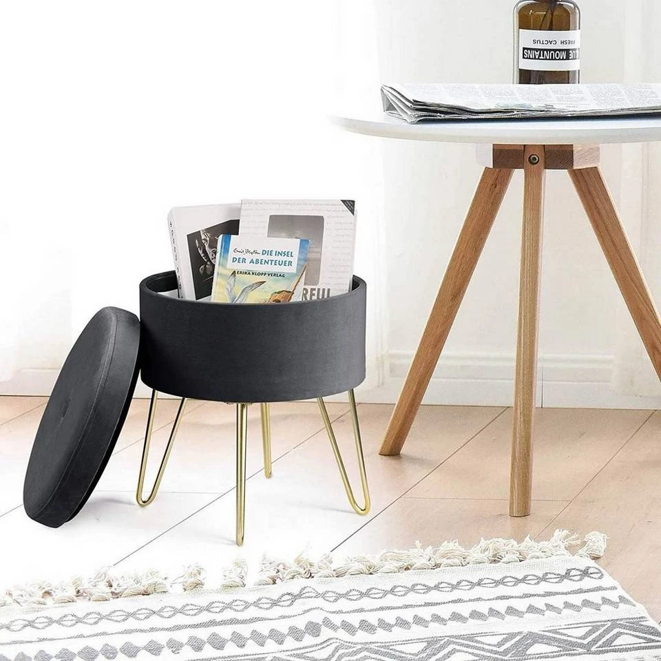 - Dieser Samthocker verfügt über einen eingebauten riesigen Stauraum. Solange Sie den Deckel des Hockers öffnen, können Sie Ihre aktuellen nicht genutzten Gegenstände zur Aufbewahrung in den Hocker legen.