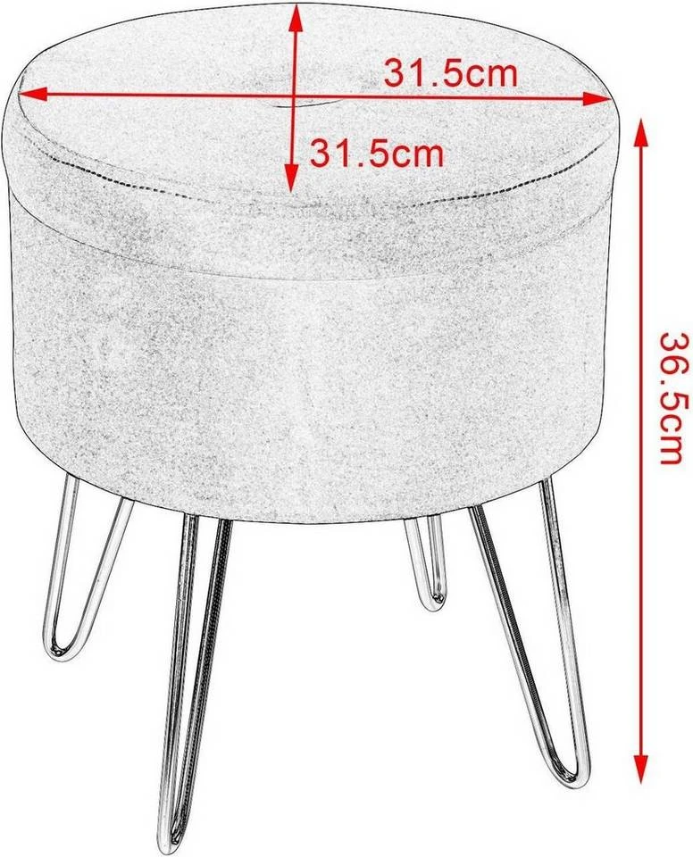 - Der Sitz des Hockers besteht aus weichem Samt, der Rahmen des Hockers aus MDF-Faserplatte (Stufe E1) und die Basis aus Metall, das sehr stark ist, was garantiert, dass Sie stabil darauf sitzen können.