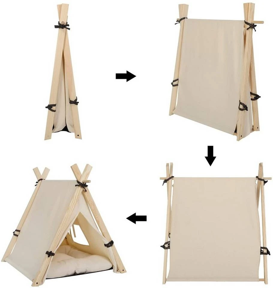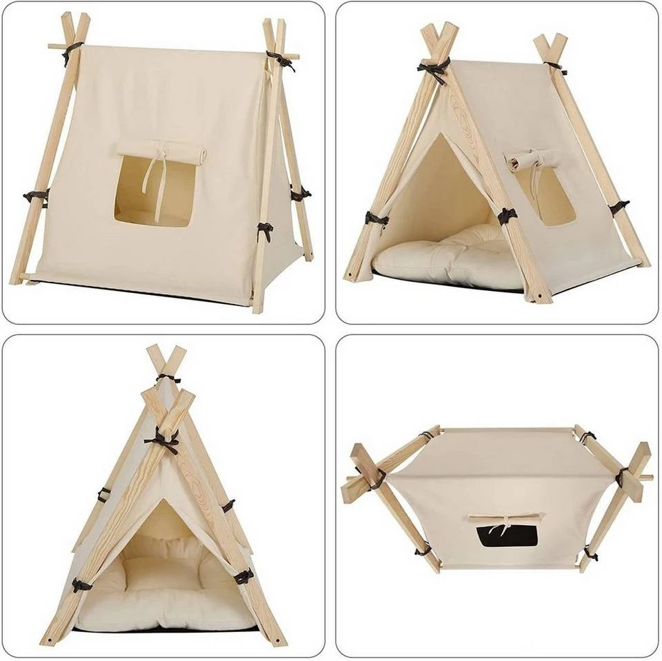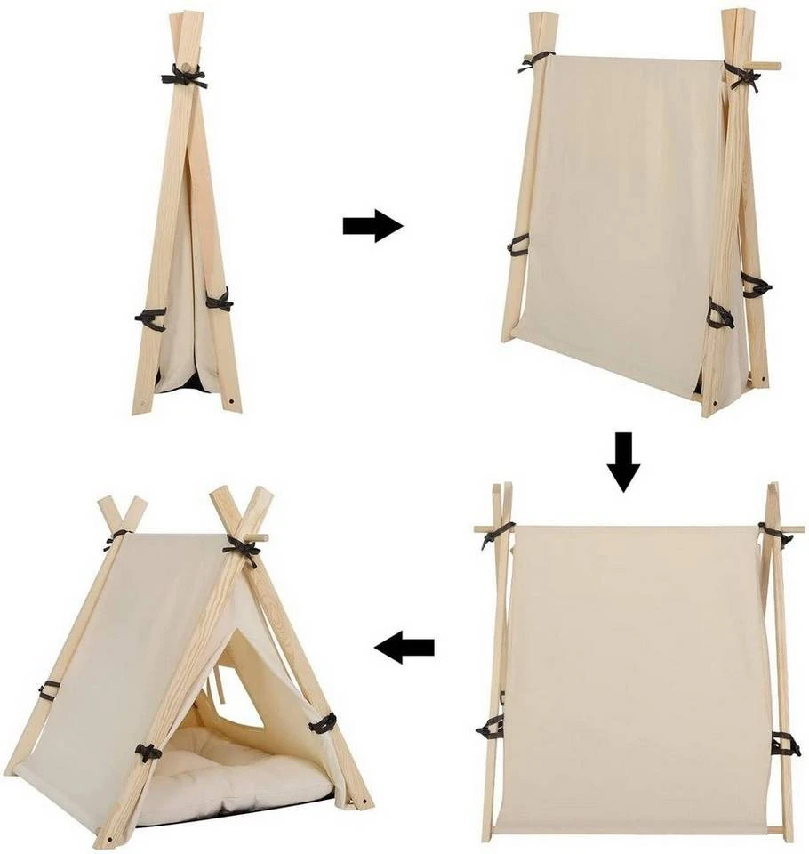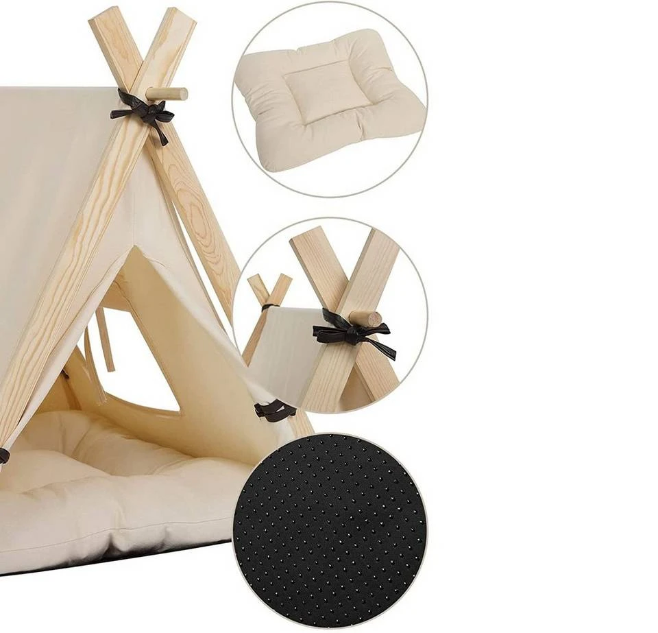 EUGAD Tierhaus, Tipi Hundezelt Katzenzelt 45x55x45cm Kätzchen Chihuahua Havaneser Kaninchen mit Kissen abnehmbar waschbar faltbar Weiß