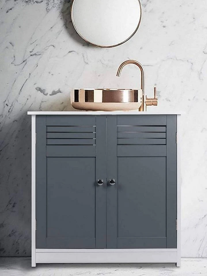 - Maße: 60 x 60 x 30 cm mit zwei Flügeltüren in klassischem Grau und mit Ablage, einfach den Handtüchern, Putzmittel oder Toilettenpapier zum Erhalten