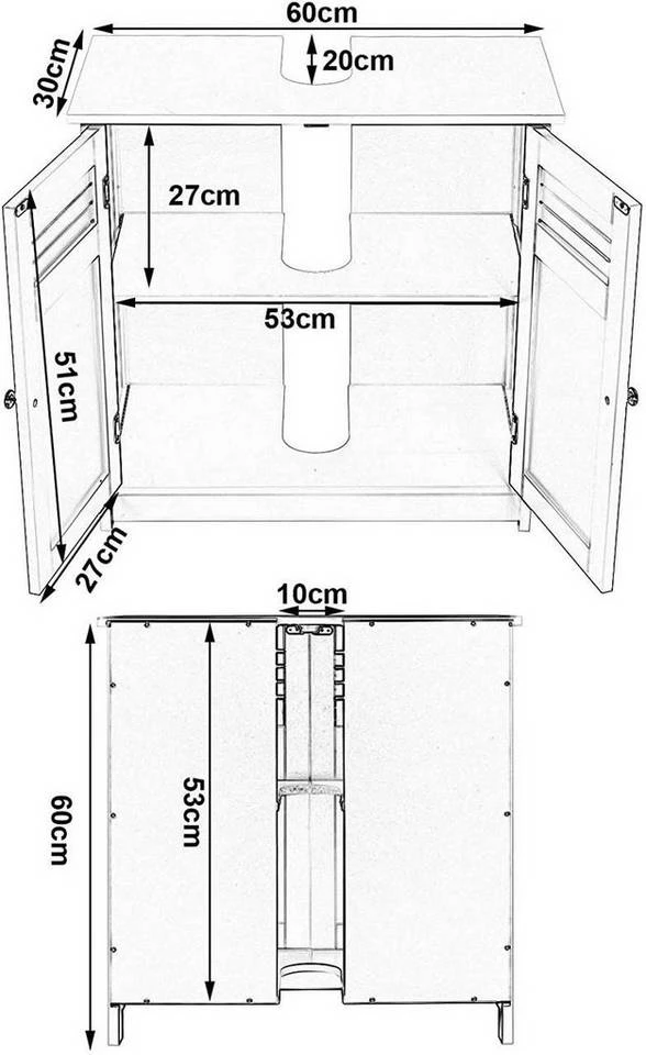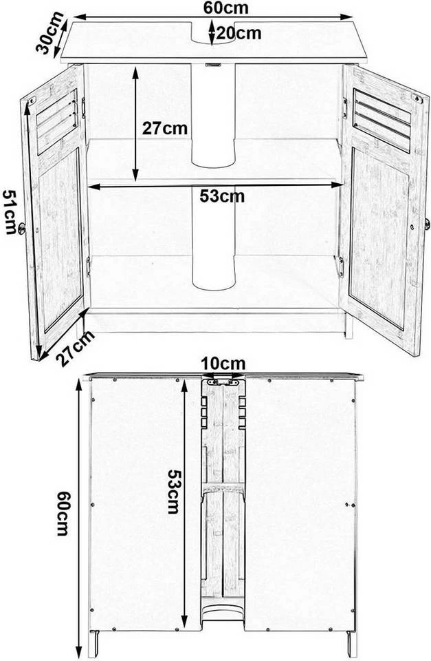 - Vor dem Kauf messen Sie die Größe Ihres Siphons und den zur Verfügung stehenden Platz unter dem Waschbecken aus, um festzustellen, ob dieser Schrank Ihre Badezimmer passt