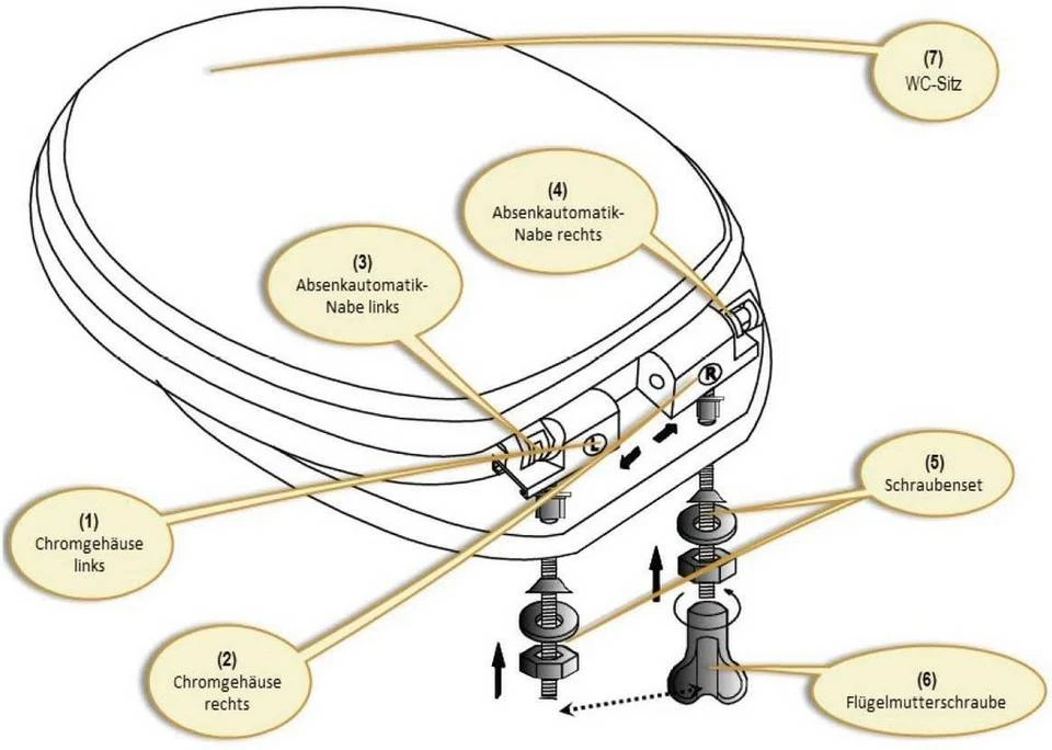 - Lieferumfang: 1 x WC-Sitz, 2 x Zubehör, 1 x Anleitung