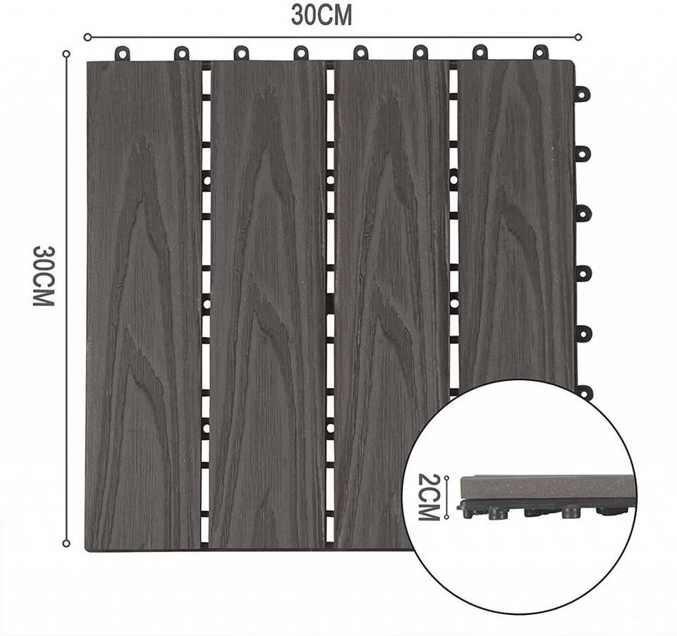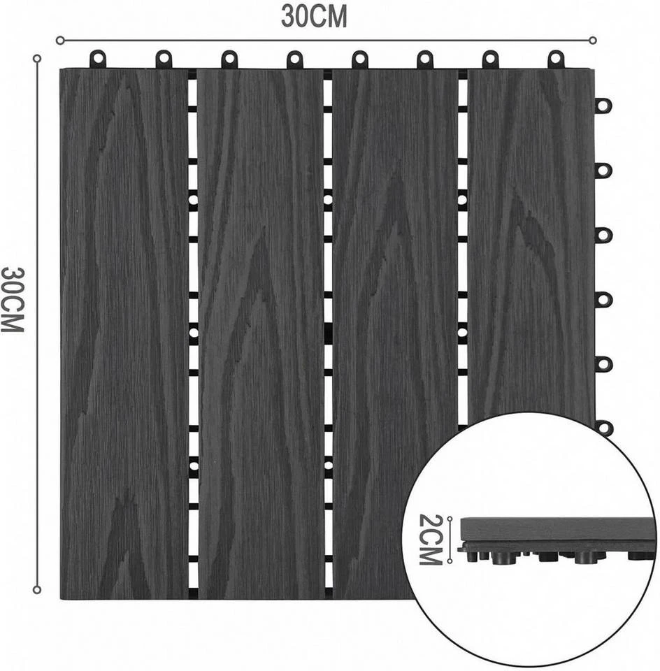 - 22 Stück WPC Terrassenfliesen 30x30cm Holzstruktur