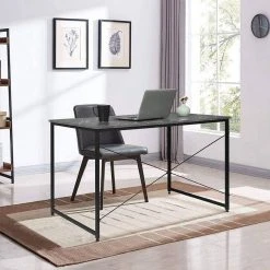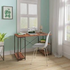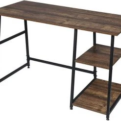 EUGAD Schreibtisch, Bürotisch PC-Tisch mit Ablage aus Metall und Holz, 120x60x75cm, Vintage