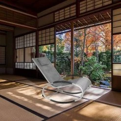 EUGAD Schaukelstuhl, 2tlg Schaukelstuhl Gartenliege Schwingstuhl für Terrasse Balkon Schwarz Grau