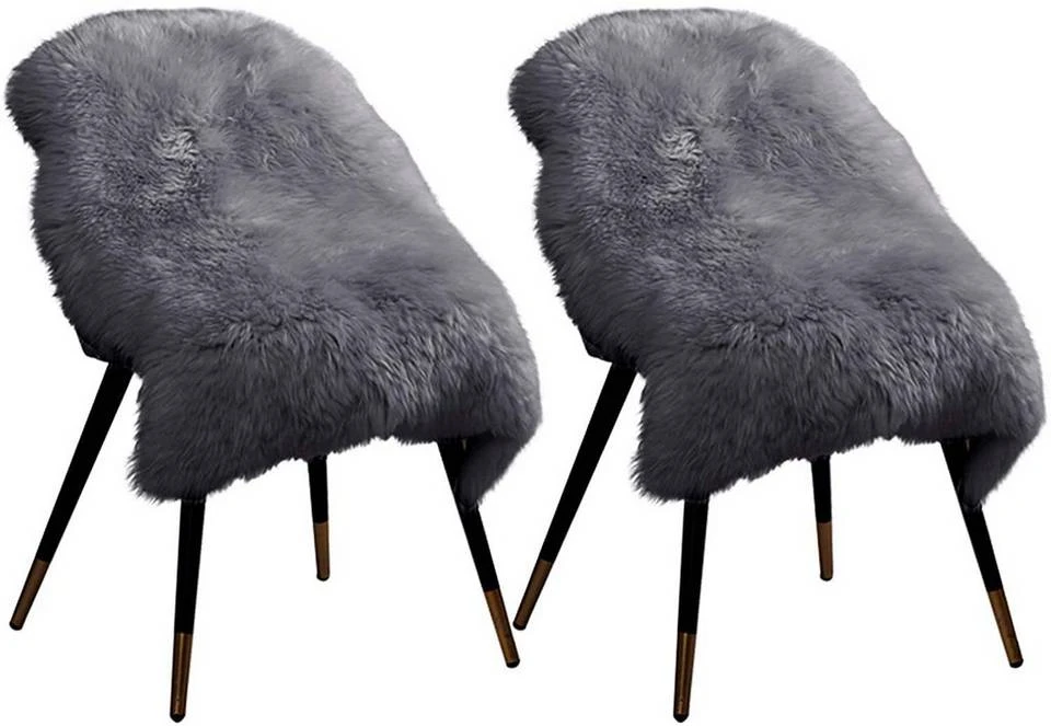 - 2er-Set Öko Lammfell echtes Longhair Fell Grau