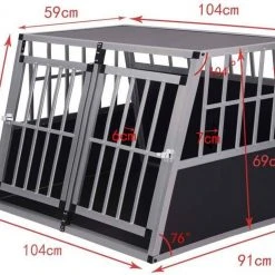 EUGAD Tiertransportbox, Hundetransportbox Alu Doppel Hundebox Reisebox für große Hunde Husky Samojede Weimaraner Labrador Deutscher Schäferhund Boxer 104x91x69cm