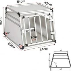 EUGAD Tiertransportbox, Hundetransportbox Alu Hundebox Reisebox Autobox für kleine/mittlere Hunde Französische Bulldogge Beagle Terriers Dackel Shiba Inu 69 x 54 x 50 cm L