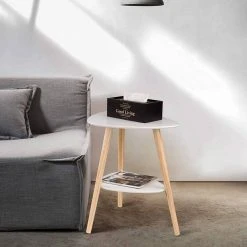 EUGAD Beistelltisch (1-St), Sofatisch Couchtisch Nachttisch Nachtkommode Nachtschrank Kaffeetisch mit 2 Ablagefäche Holzbeine MDF 50x40x55cm Weiß