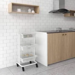 EUGAD Beistellwagen »0030CC«, Rollwagen Küchewagen 3 Gitterkörbe, Rolle mit Bremse 40x76x30 cm Weiß